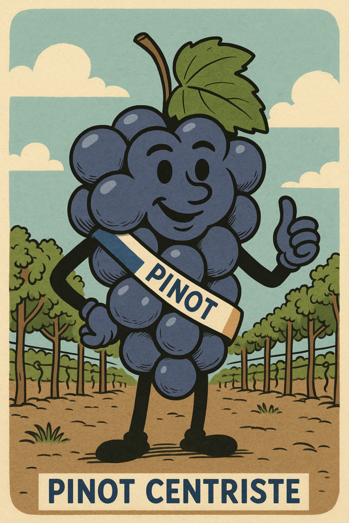 Dans la Cav’Coop Nationale, le Pinot Centriste avance sur la pointe des pépins. Toujours souriant, toujours tempéré, toujours impeccable dans sa robe claire. Ni trop rouge, ni trop rosé, ni trop blanc : un vin qui sait tout dire… sans jamais vraiment se mouiller.